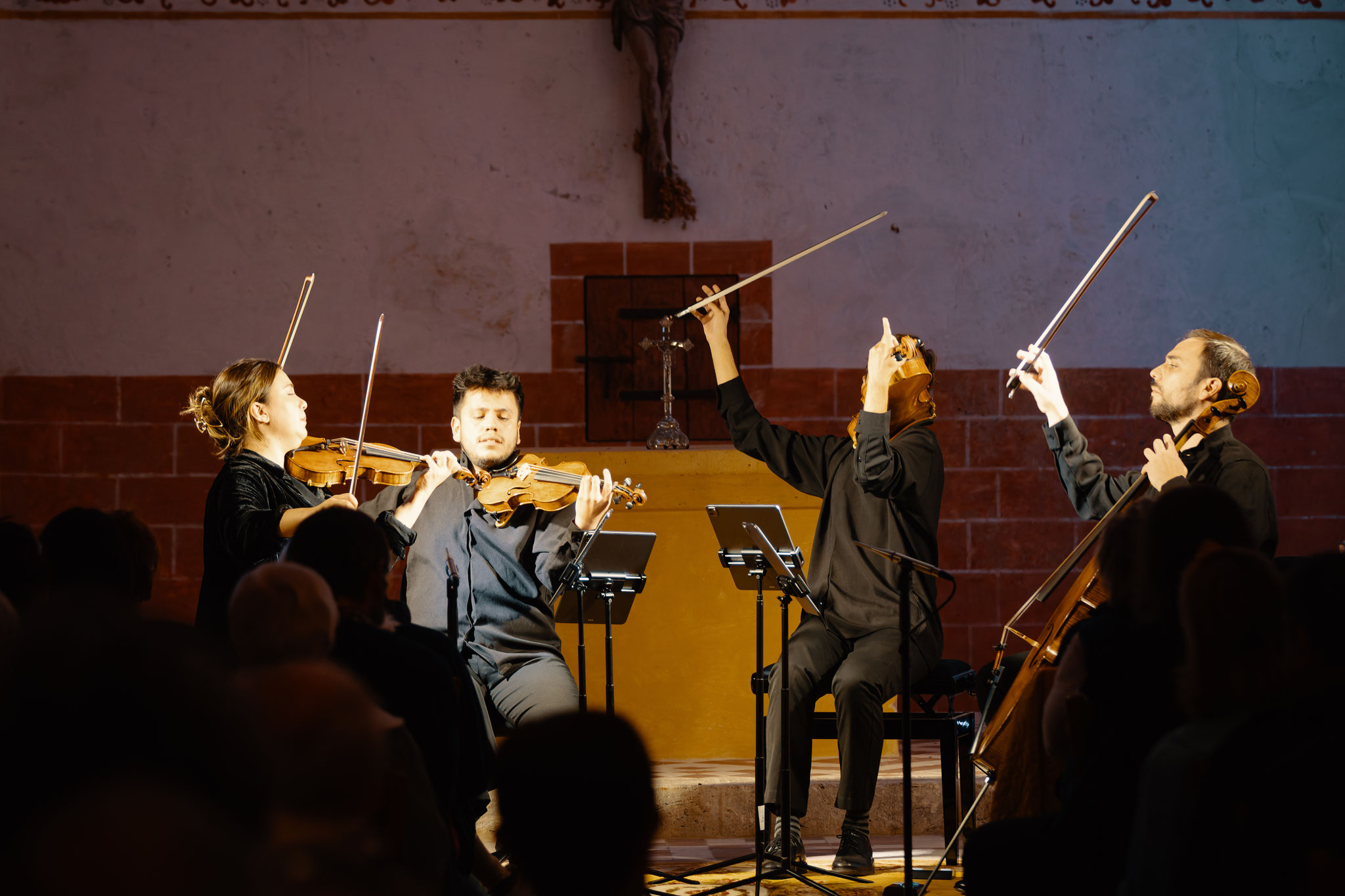 "...Festival francilien étonnant et réjouissant [...] Le Quatuor Kandinsky, basé à Vienne, fondé pendant les confinements de 2020 par des musiciens de tous horizons (autrichienne, chilien, italien, espagnol). Je suis particulièrement impressionné, en l'occurrence, par leur Haydn Op.77 n°2 (le dernier du catalogue), un monument très peu joué en concert en France – ils parviennent à conserver une finesse de trait dans l'accompagnement qui évite l'effet d'évidence pataude et de lourdeur qu'on ressent souvent avec les musiciens non spécialistes. [...] L'Élégie de leur Chostakovitch [...] portait par ailleurs cette même marque d'élégance, un Chostakovitch très inhabituel, tout aussi dégingandé et souffrant que chez ses meilleurs interprètes, mais élégant et sensible – comme passé par le filtre esthétique de la musique pour quatuor de Wellesz ou du jeune Webern. J'avoue avoir adoré cette rencontre stylistique entre deux univers aussi dissemblables que possible, en théorie, et parfaitement congruents en pratique" . Magazine Carnets sur sol. Suite de l'article ....